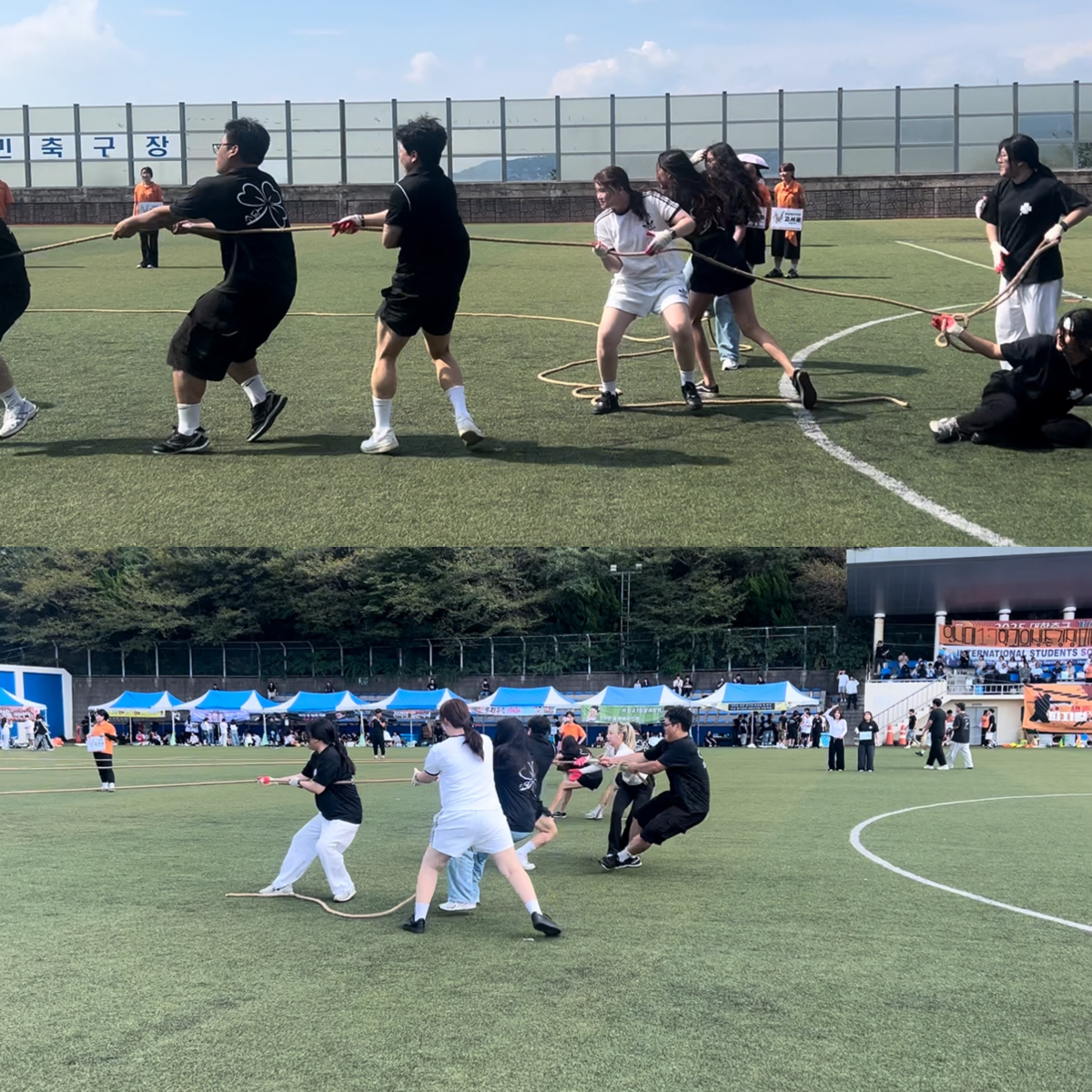 이번 체육대회에서는 ‘청백전’🏳️이 새롭게 도입되어, 학과 간 경쟁이 아닌 함께 어우러지는 단합의 장이 되어 모두가 같이 응원하고 즐길 수 있었던 뜻깊은 시간이었습니다.