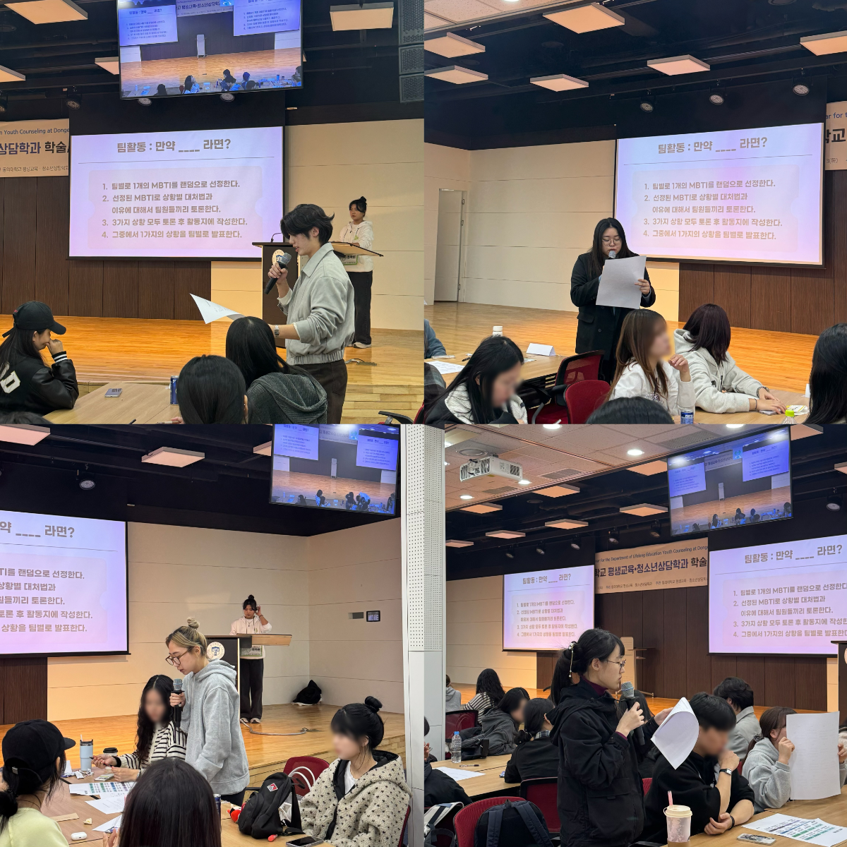 이후 MBTI를 주제로 한 “만약 내가 ○○라면?” 🧐팀빌딩 활동과 레크레이션을 통해 학우분들 간의 친밀도를 높일 수 있는 즐거운 시간을 가졌습니다❗️
