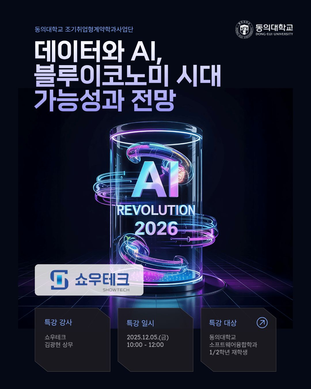 - 이전글 [조기취업형계약학과사업] 2025-2학기 소프트웨어융합학과 기업체 특강_(주)스마트빅 김태형 과장(25.11.14)